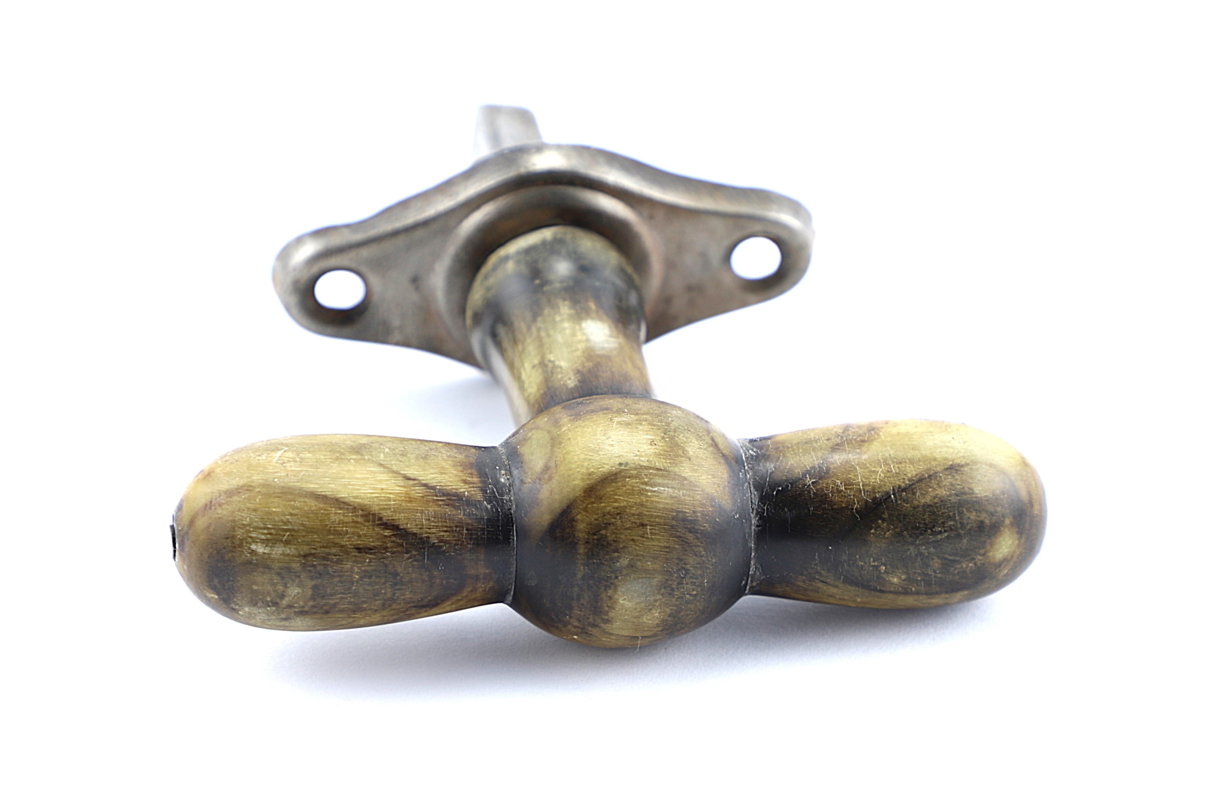 Diese Fensteroliven werden mit einer passenden 43 mm Fußplattenrosette und M 5 Linsen/Schlitz Gewindeschrauben versendet. Ein 7 mm Vierkantstift wird eingepasst.