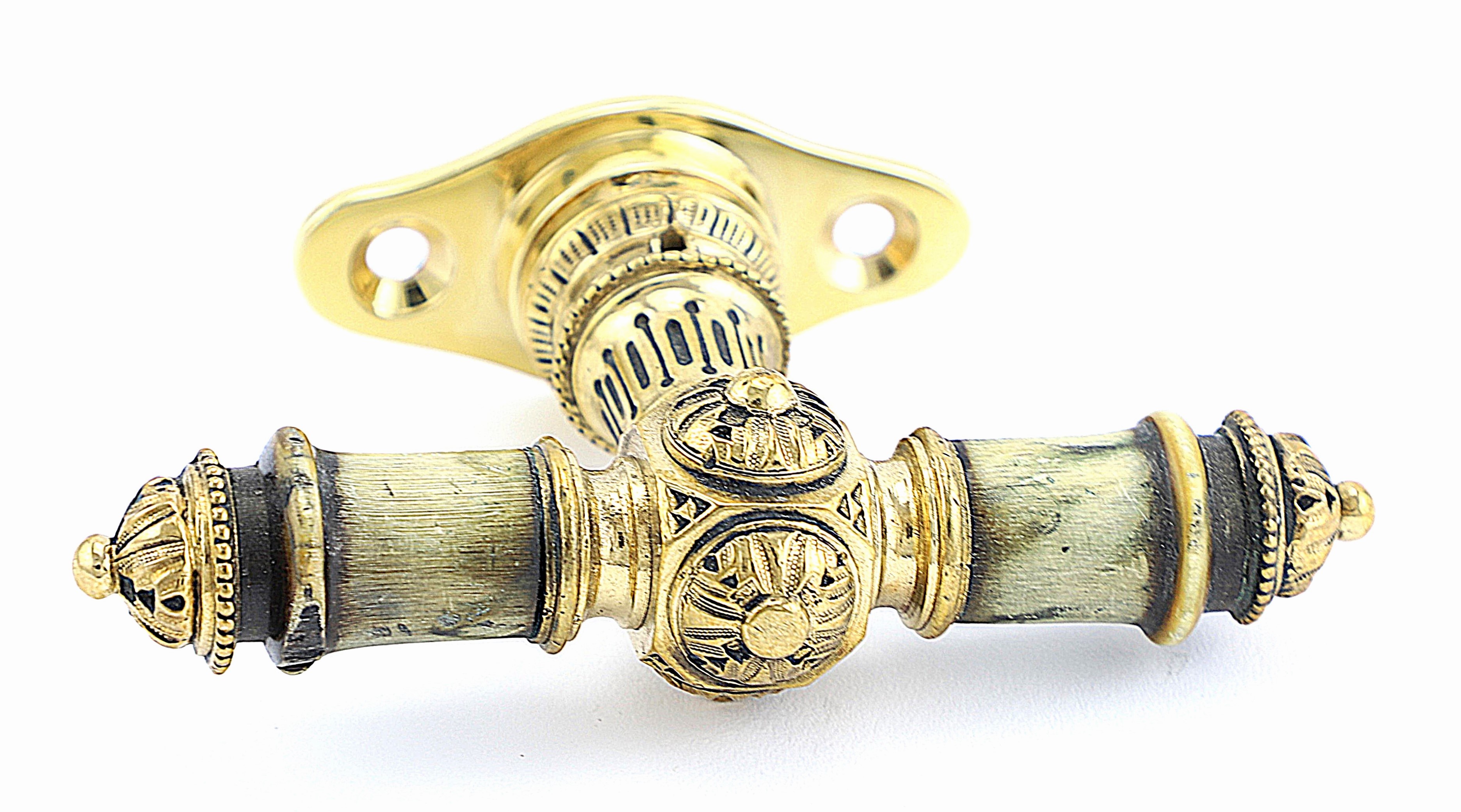 Diese Fensteroliven werden mit einer passenden 43 mm Fußplattenrosette und M 5 Linsen/Schlitz Gewindeschrauben versendet. Ein 7 mm Vierkantstift wird eingepasst.