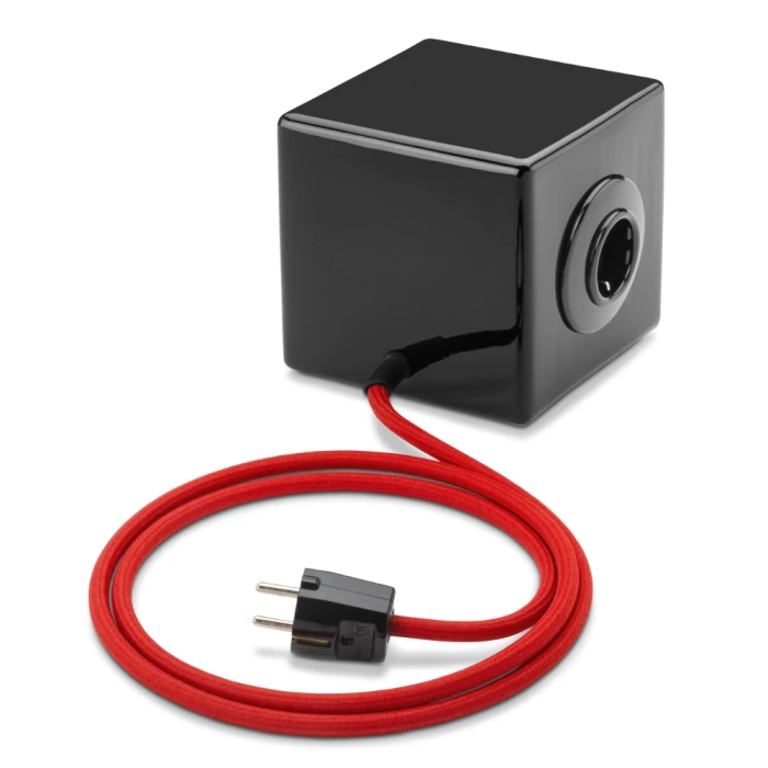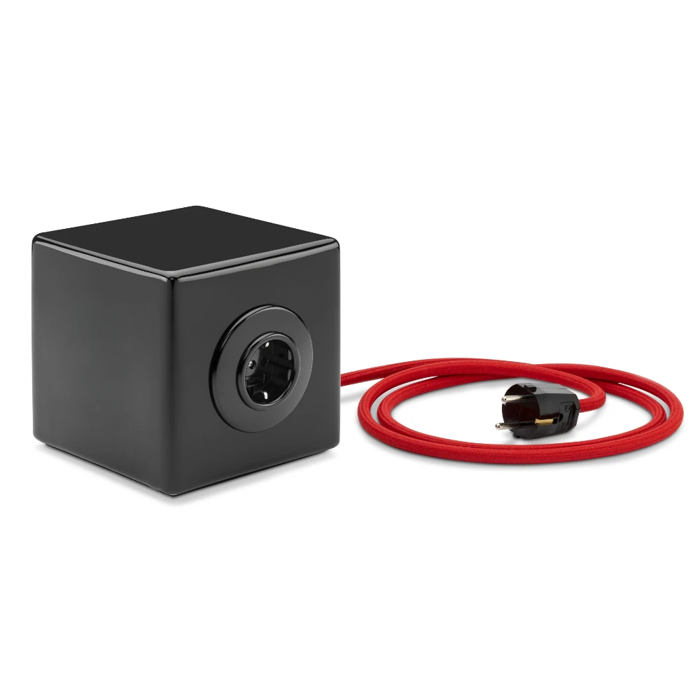 12867.1 PS THPG-Stromwürfel aus schwarzen Porzellan mit 2 Steckdosen und rotem Kabel