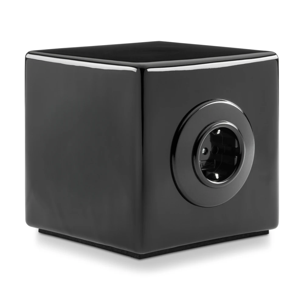Properties "12867.1 PS THPG-Stromwürfel aus schwarzen Porzellan mit 2 Steckdosen und rotem Kabel"