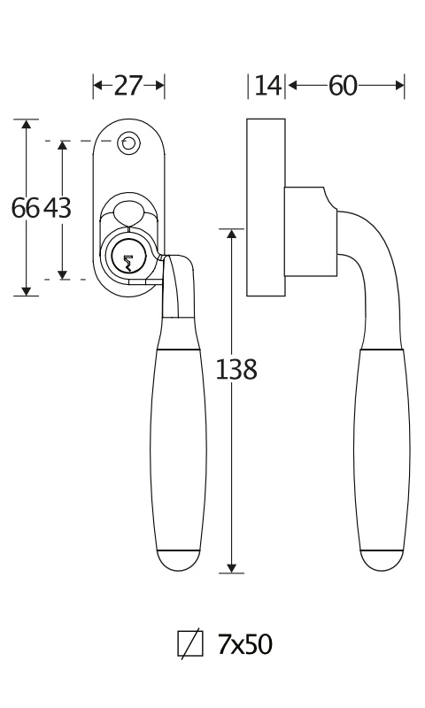 1 Fenstergriff abschließbar inkl. Rosette, fest montiert