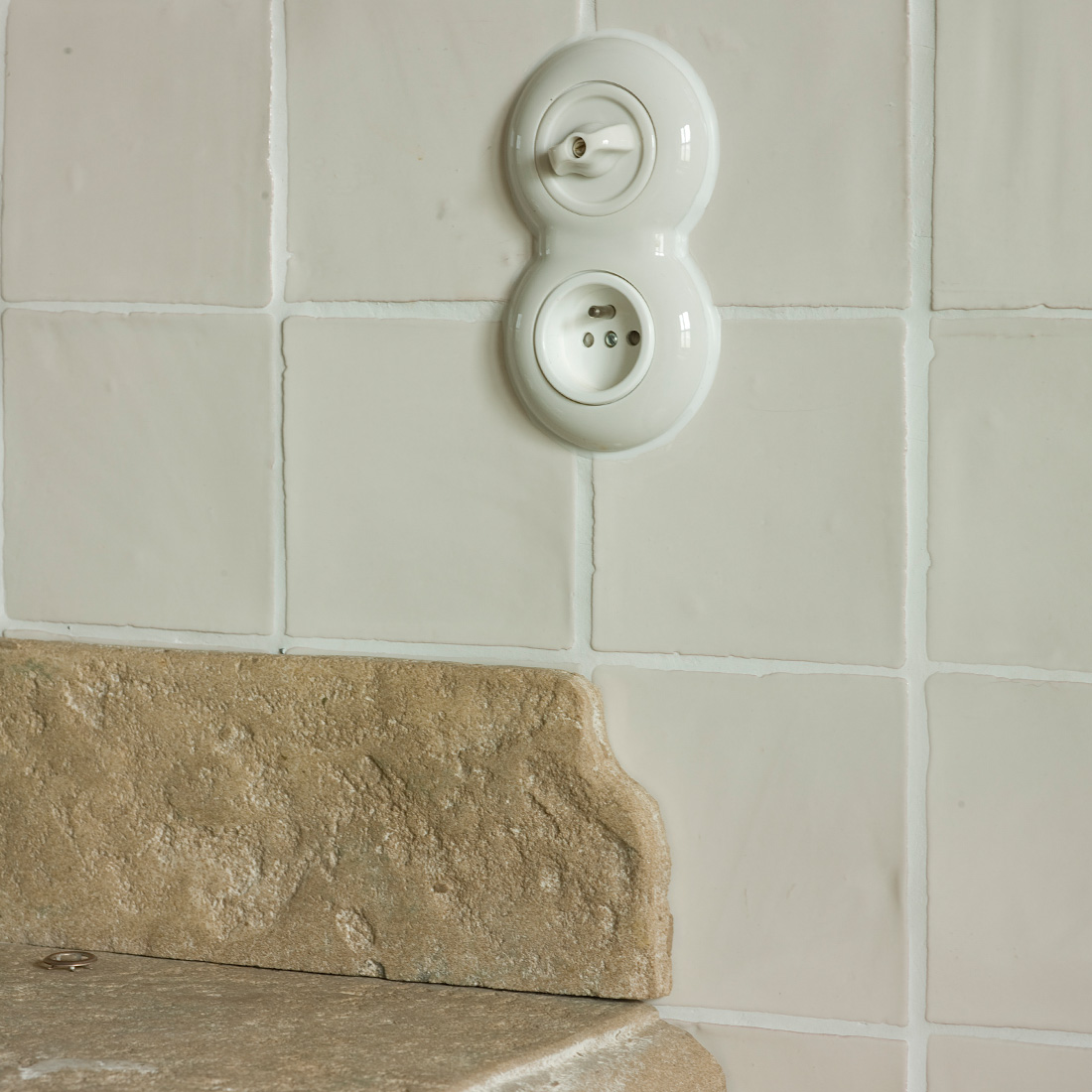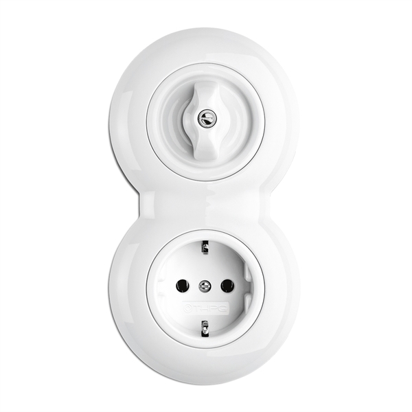 Steckdose und Drehschalter inkl. Doppelabdeckung Porzellan